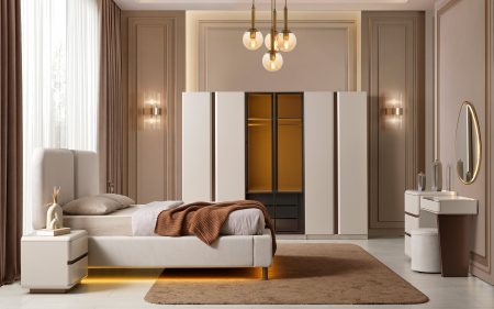 Troya Yatak Odası, İnegöl Mobilya kalitesinin ve işçiliğini bir araya getirerek yatak odalarınıza tarzınızı yansıtıyor. İnegöl’ün mobilya üretim kalitesinden gelen bu yatak odası takımı dolap, şifonyer ve ayna, komodin ve karyoladan oluşturmaktadır.