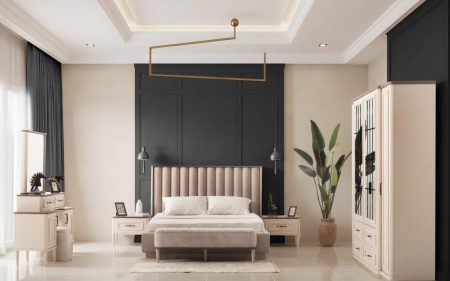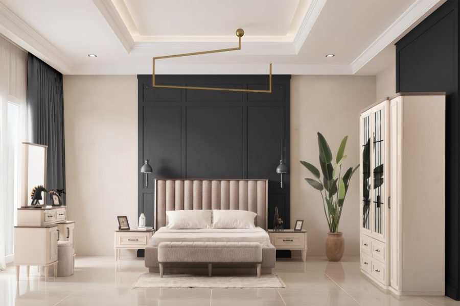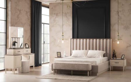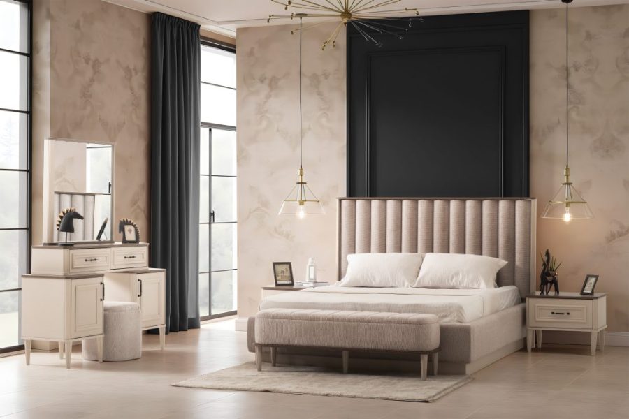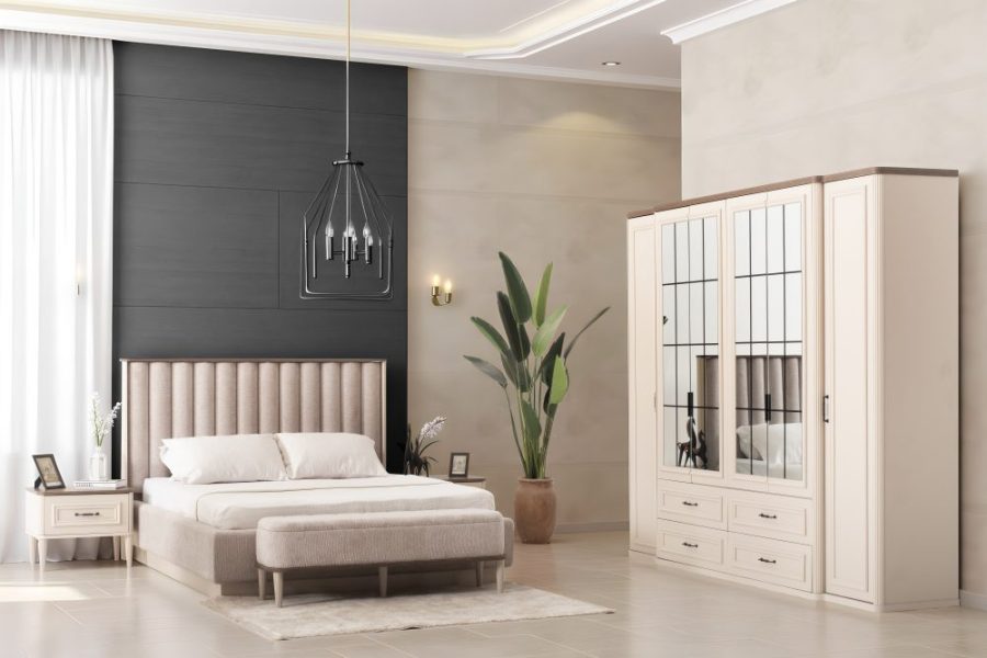 Yatak Odası Takımı: Dolap – Bazalı Karyola ve Başlık – Aynalı Şifonyer ve Komodinler