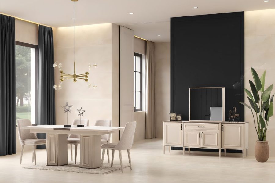 Yemek Odası Takımı: Aynalı Konsol – Masa ve 6 Sandalye