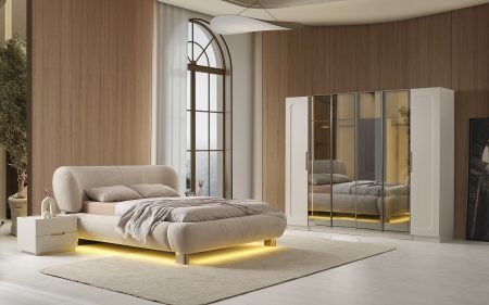 Yatak Odası Takımı: Dolap – Bazalı Karyola ve Başlık – Aynalı Şifonyer ve Komodinler