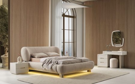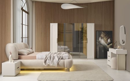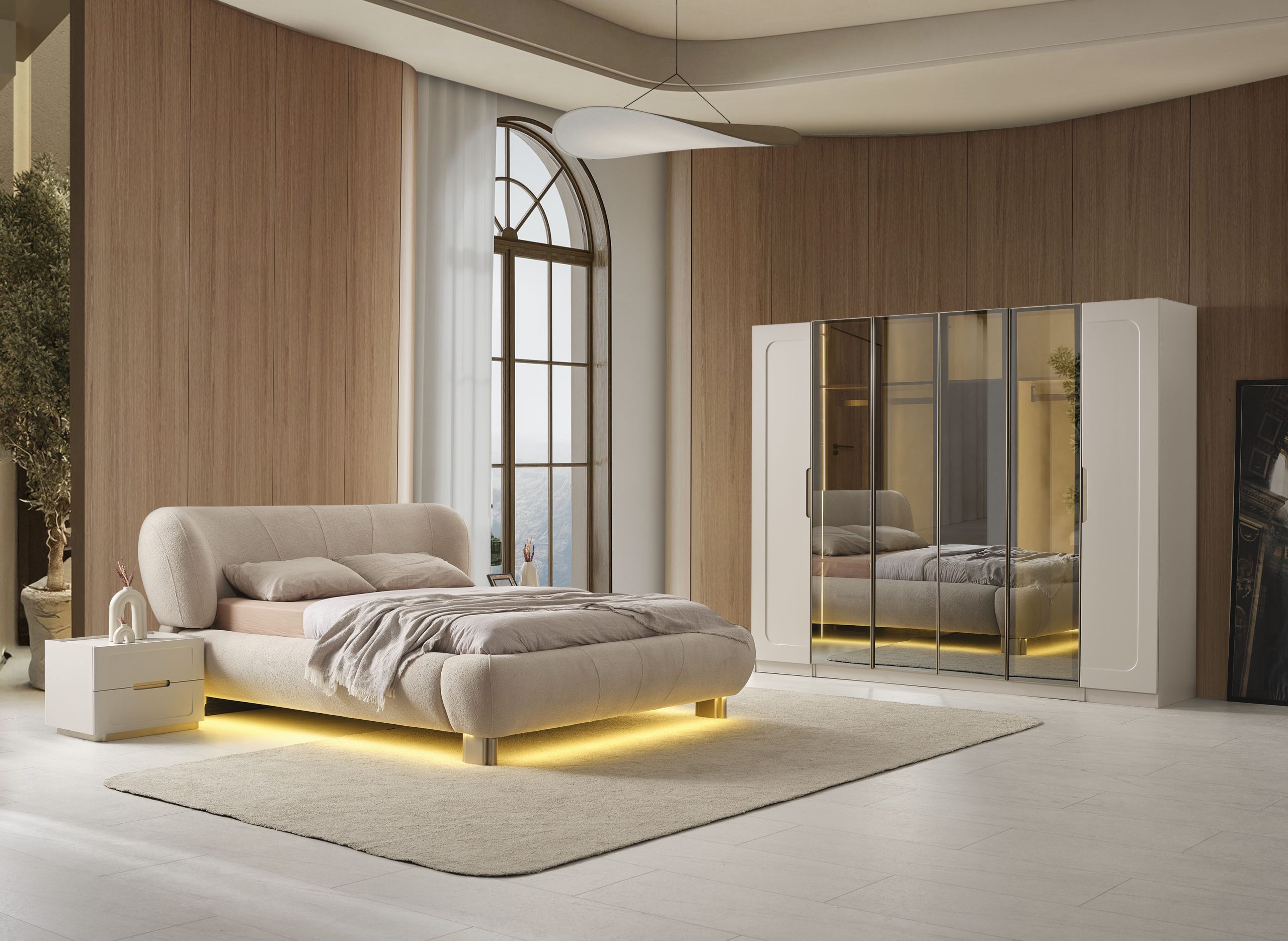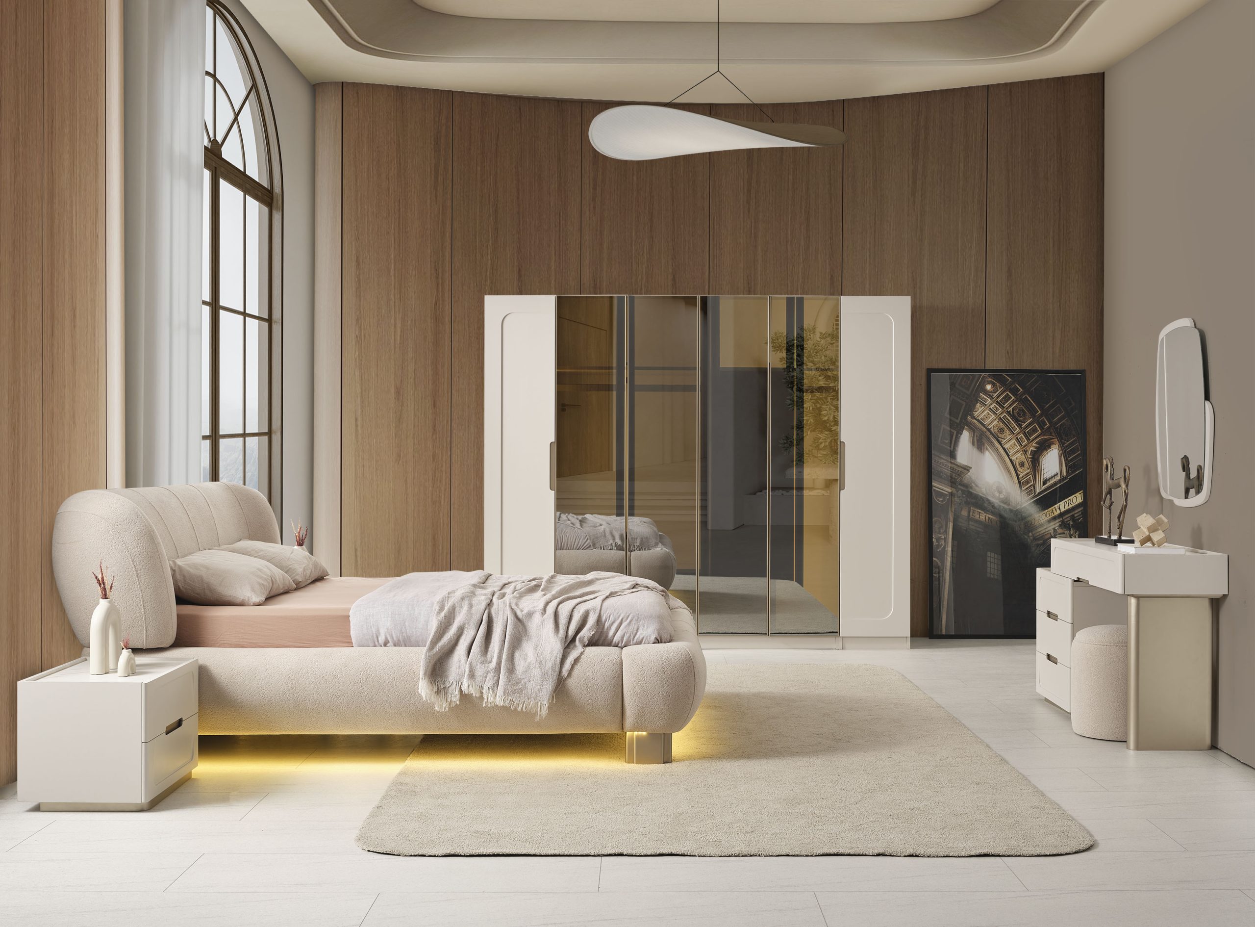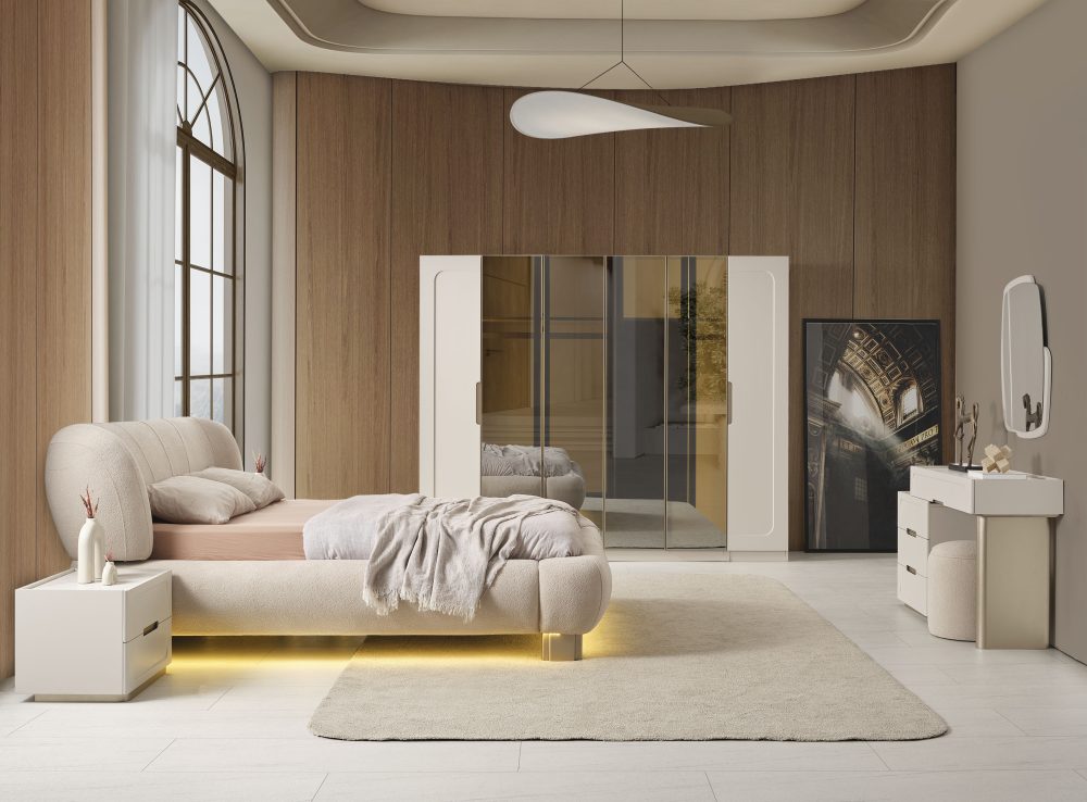 Aspera Yatak Odası, İnegöl Mobilya kalitesinin ve işçiliğini bir araya getirerek yatak odalarınıza tarzınızı yansıtıyor. İnegöl’ün mobilya üretim kalitesinden gelen bu yatak odası takımı dolap, şifonyer, ayna, komodin ve karyoladan oluşturmaktadır.
