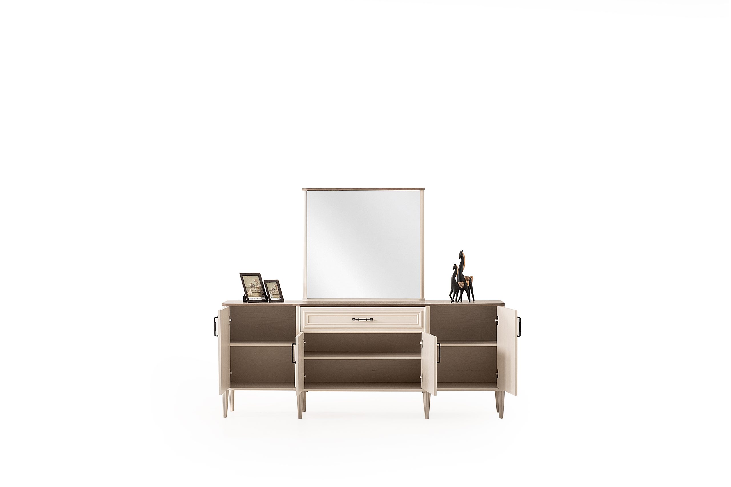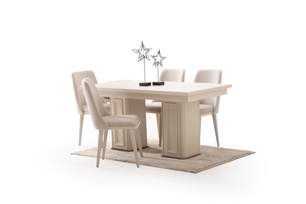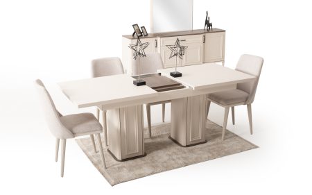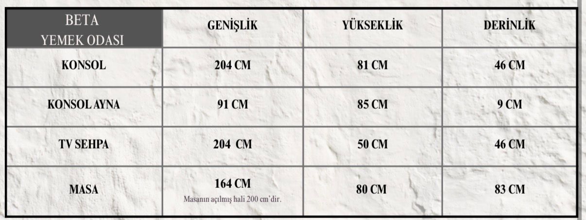 Beta Yemek Odası, keyifle geçen akşam yemeklerinize eşlik eden yemek odası takımı için evinizi güzelleştirecek tercihlerden birisidir. İnegöl Mobilya üretiminden gelen yemek odası takımının içeriğinde masa, sandalye, konsol ve ayna bulunmaktadır.