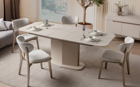 Yemek odası takımınızı nemli bir bez ile silerek temizliğini yapabilirsiniz. Direkt güneş ışığından koruyunuz. Sıcak yüzeylerin ve suyun uzun süre temasından kaçınınız. Çamaşır suyu ve benzeri ürünlerin kullanılmasını kesinlikle önermiyoruz.