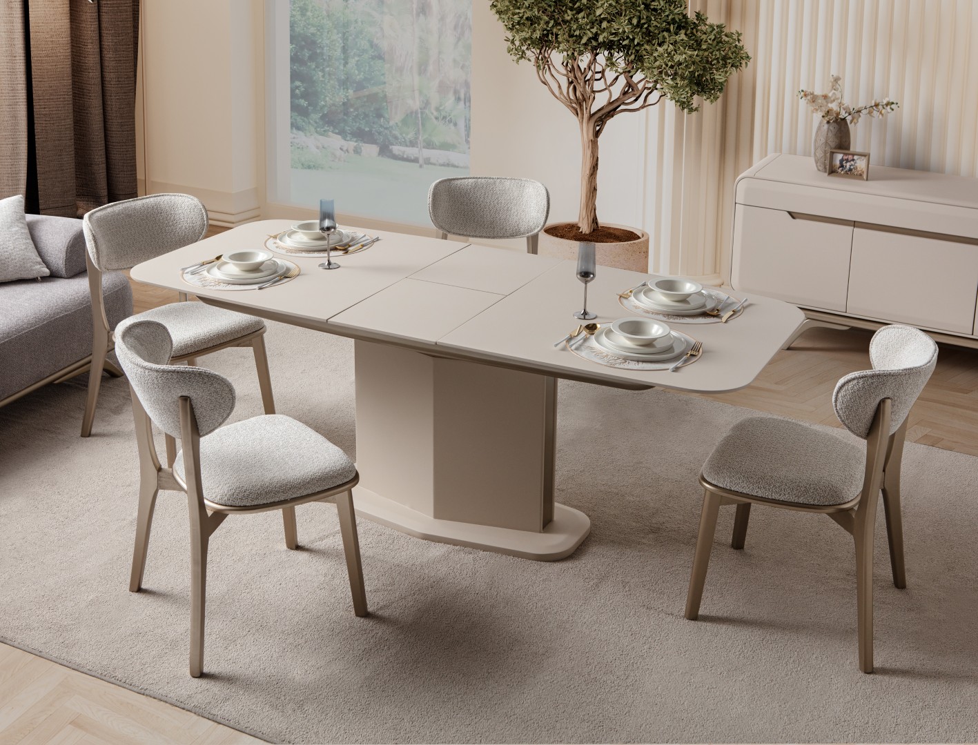 Bonj Yemek Odası, keyifle geçen akşam yemeklerinize eşlik eden yemek odası takımı için evinizi güzelleştirecek tercihlerden birisidir. İnegöl Mobilya üretiminden gelen yemek odası takımının içeriğinde masa, sandalye, konsol ve ayna bulunmaktadır.