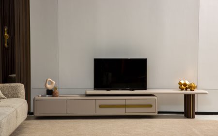 Golf Modern TV Ünitesi, oturma odası ve salon mobilyalarınıza estetiği ile eşlik edecek ve seyir zevkinizi arttıracak tercihlerden birisidir. TV Ünitesi modellerimiz İnegöl Mobilya üretim merkezlerinde üretilmektedir.