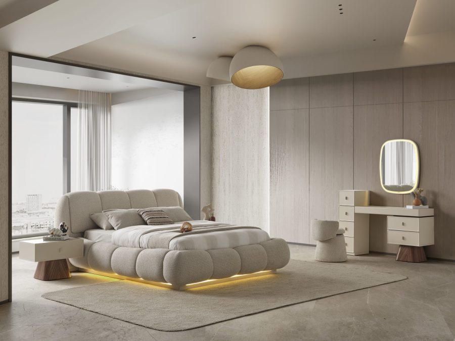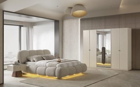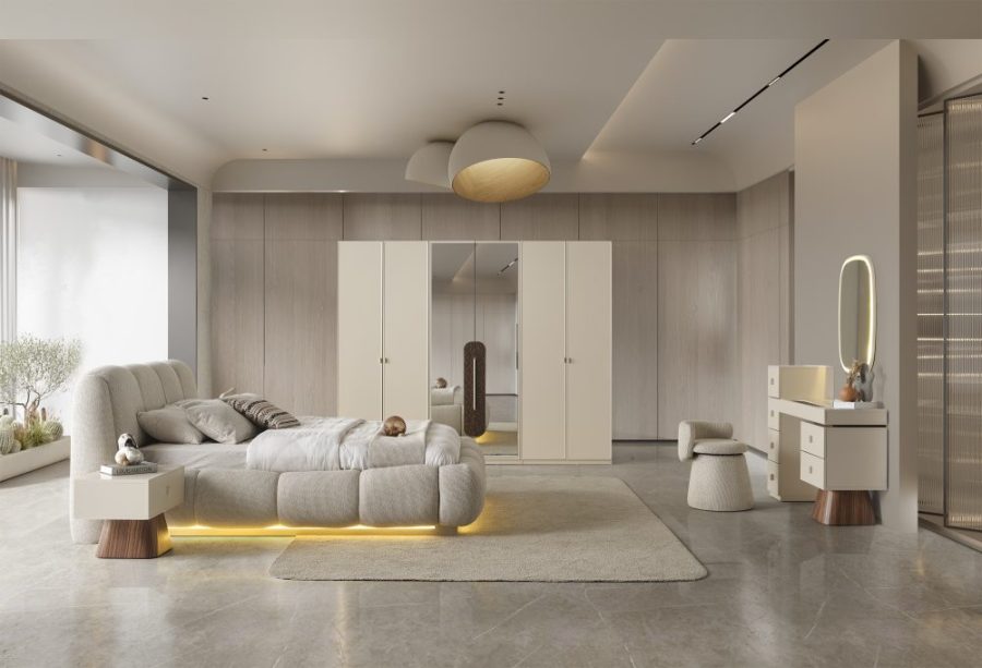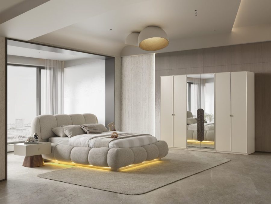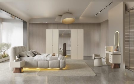 Yatak Odası Takımı: Dolap – Bazalı Karyola ve Başlık – Aynalı Şifonyer ve Komodinler