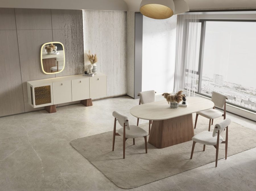 Yemek Odası Takımı: Aynalı Konsol – Masa ve 6 Sandalye