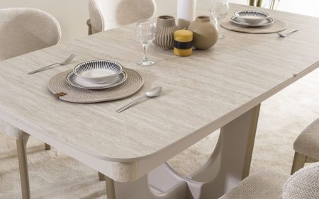 Yemek odası takımınızı nemli bir bez ile silerek temizliğini yapabilirsiniz. Direkt güneş ışığından koruyunuz. Sıcak yüzeylerin ve suyun uzun süre temasından kaçınınız. Çamaşır suyu ve benzeri ürünlerin kullanılmasını kesinlikle önermiyoruz.