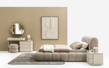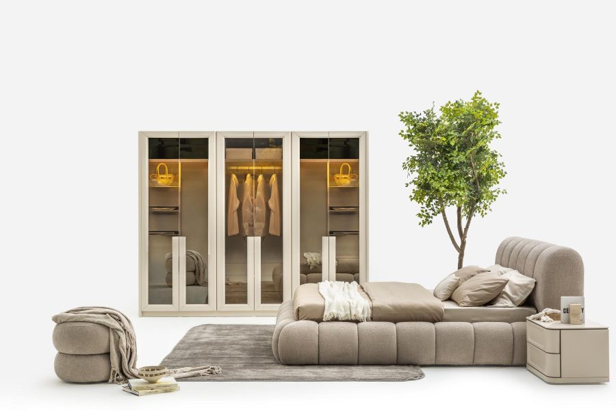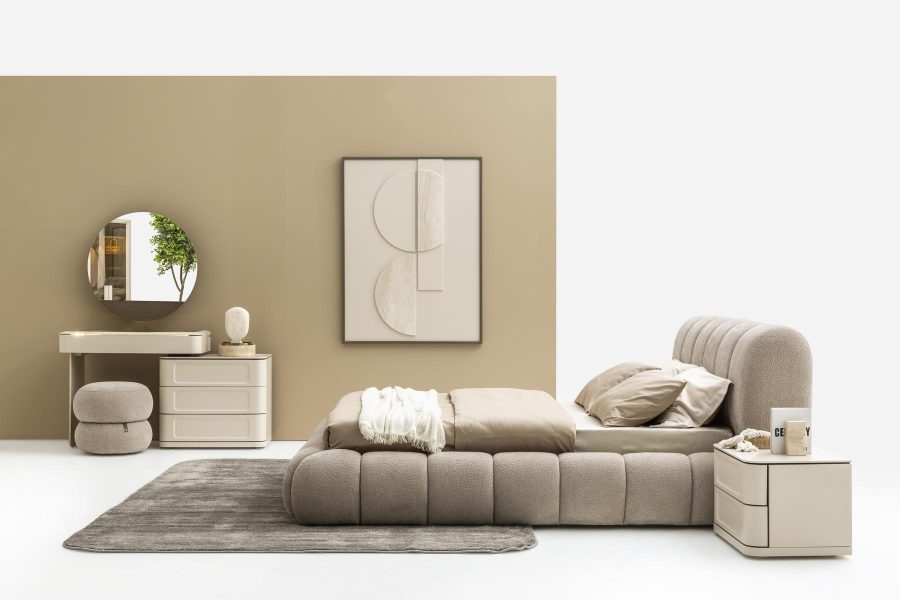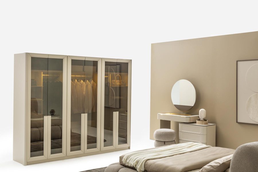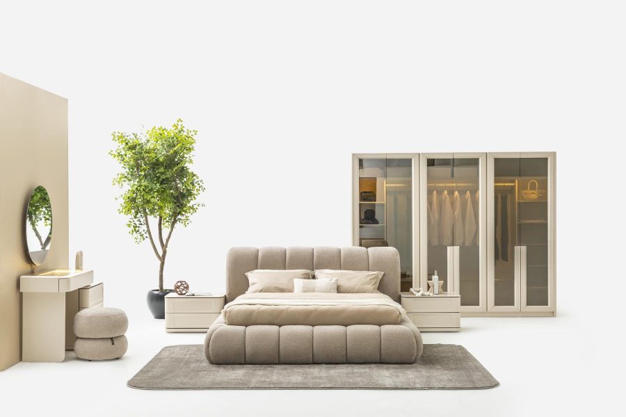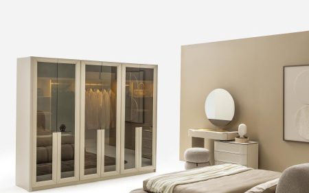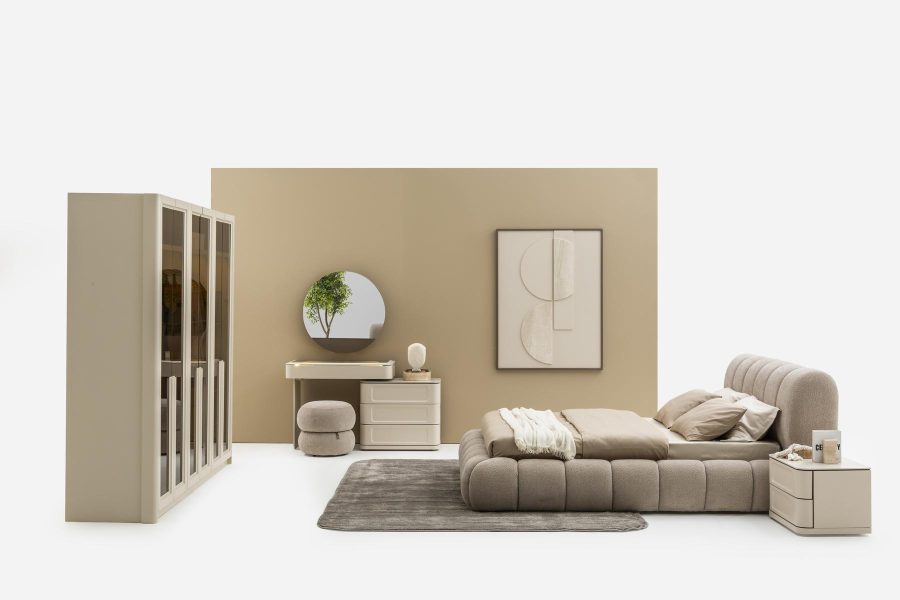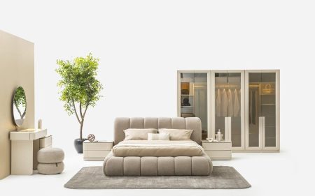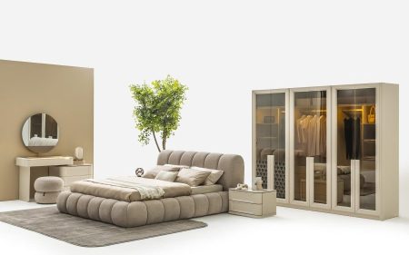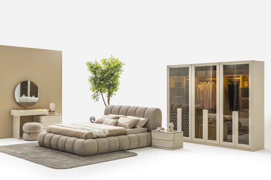 Yatak Odası Takımı: Dolap – Bazalı Karyola ve Başlık – Aynalı Şifonyer ve Komodinler