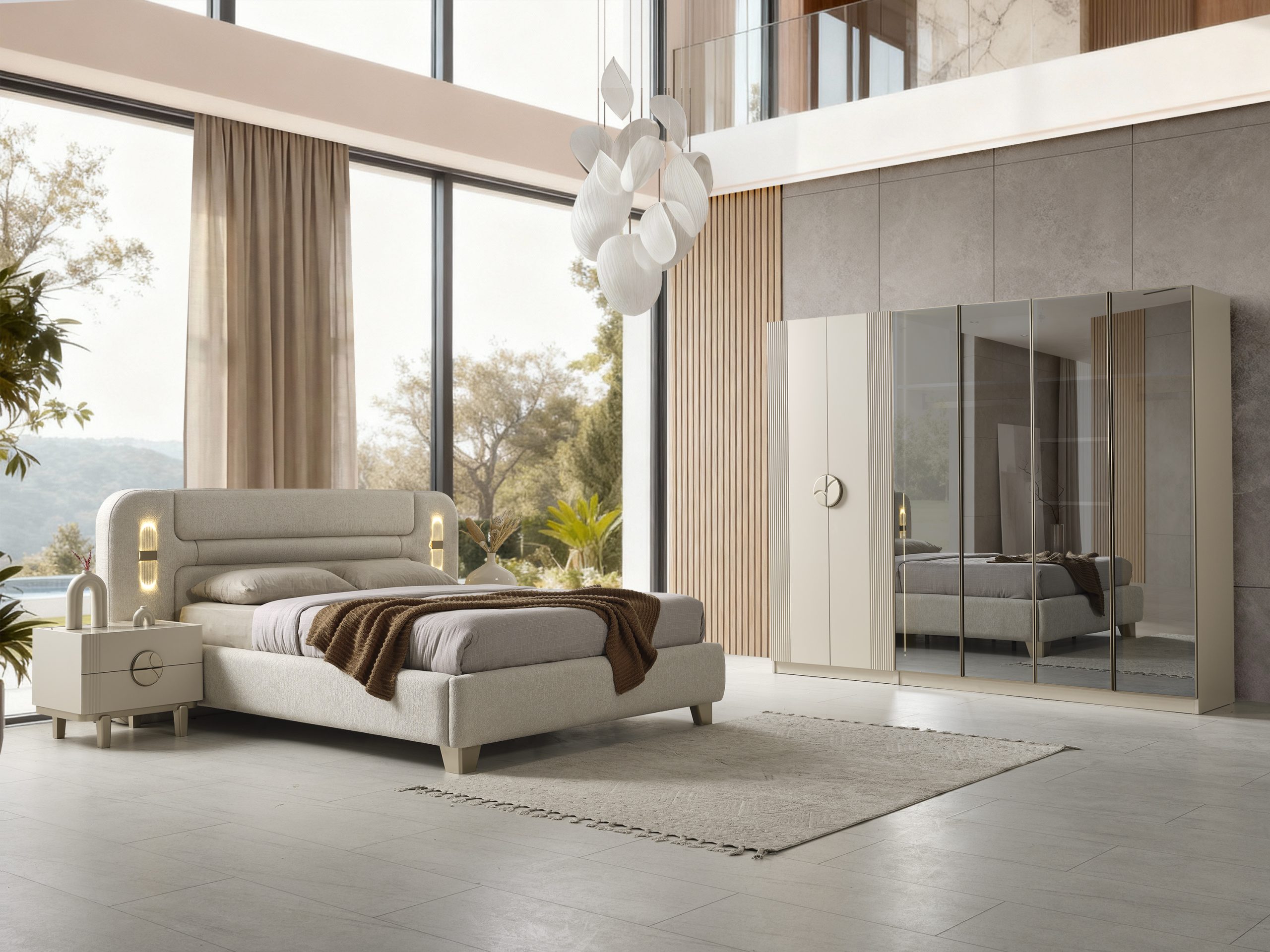 Yatak Odası Takımı: Dolap – Bazalı Karyola ve Başlık – Aynalı Şifonyer ve Komodinler