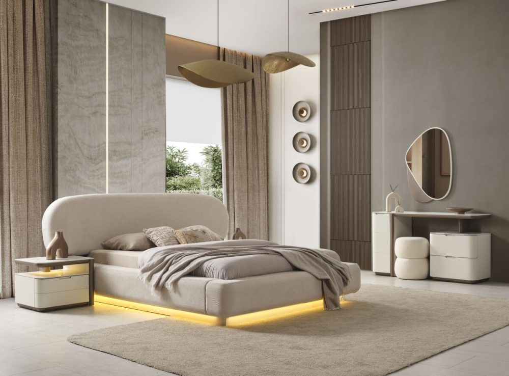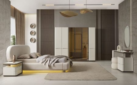 Yatak Odası Takımı: Dolap – Bazalı Karyola ve Başlık – Aynalı Şifonyer ve Komodinler