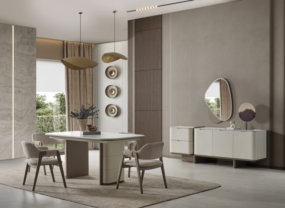 Yemek Odası Takımı: Aynalı Konsol – Masa ve 6 Sandalye