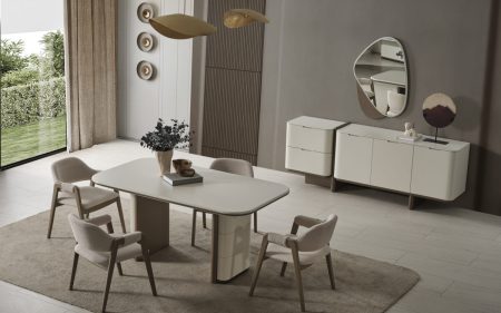 Vega Yemek Odası, keyifle geçen akşam yemeklerinize eşlik eden yemek odası takımı için evinizi güzelleştirecek tercihlerden birisidir. İnegöl Mobilya üretiminden gelen yemek odası takımının içeriğinde masa, sandalye, konsol ve ayna bulunmaktadır.